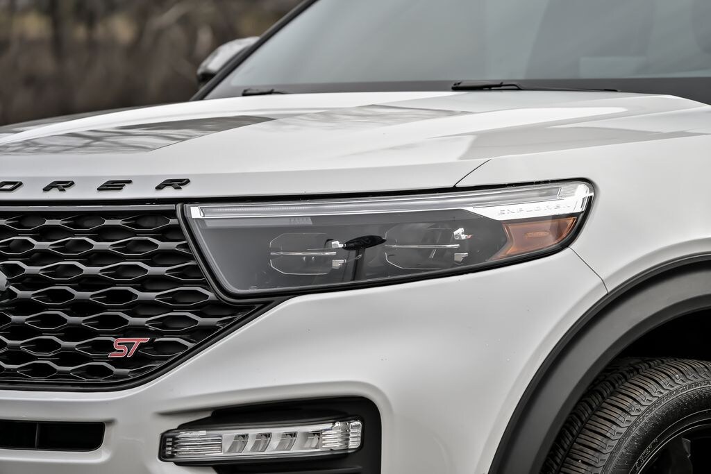 Finished in premium Star White Metallic Tri-Coat, this Explorer ST combines bold presence with refined sophistication. The blacked-out ST accents and athletic stance make a statement whether youre heading to dinner in St. Charles or commuting through Schaumburg and Hoffman Estates.